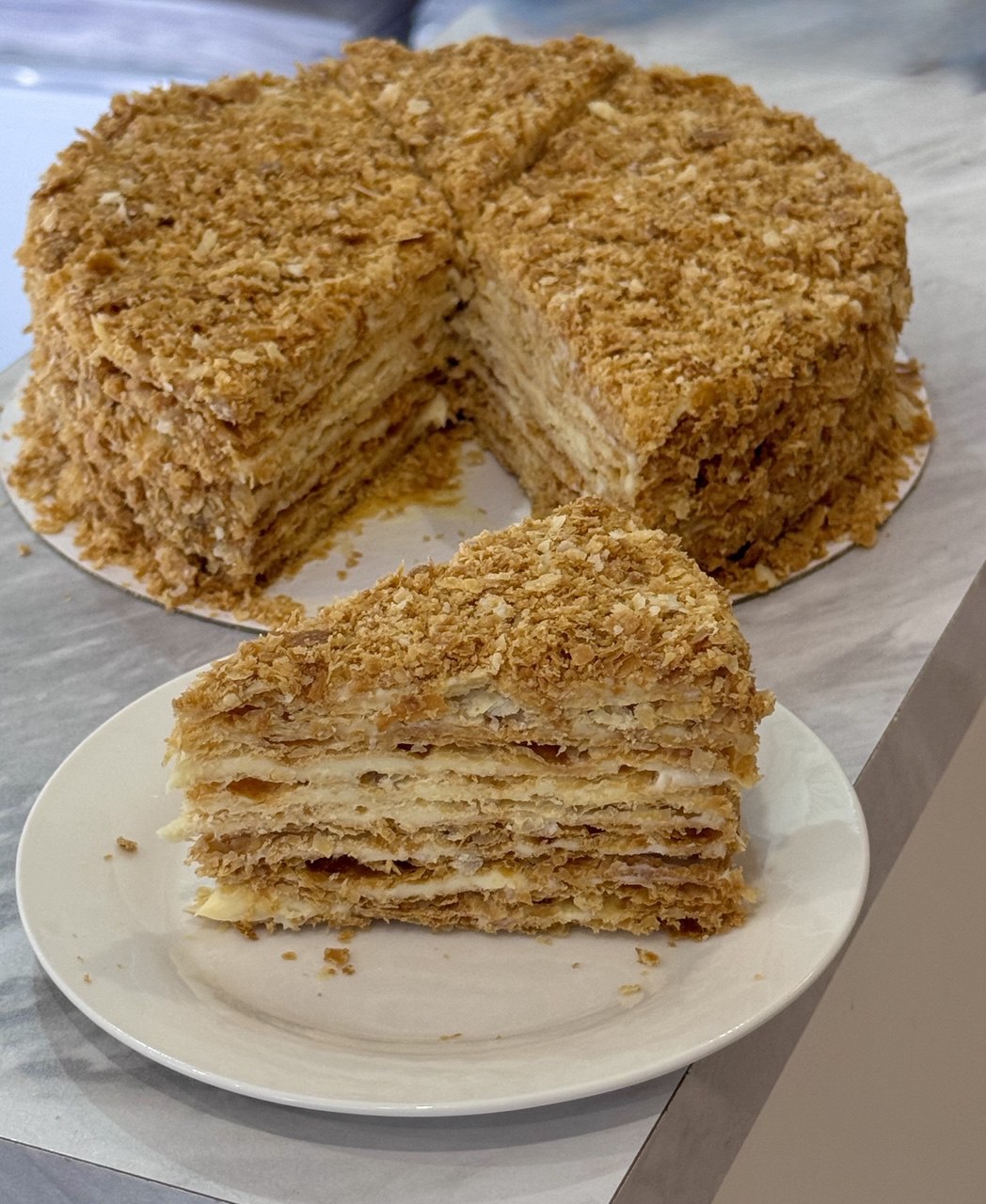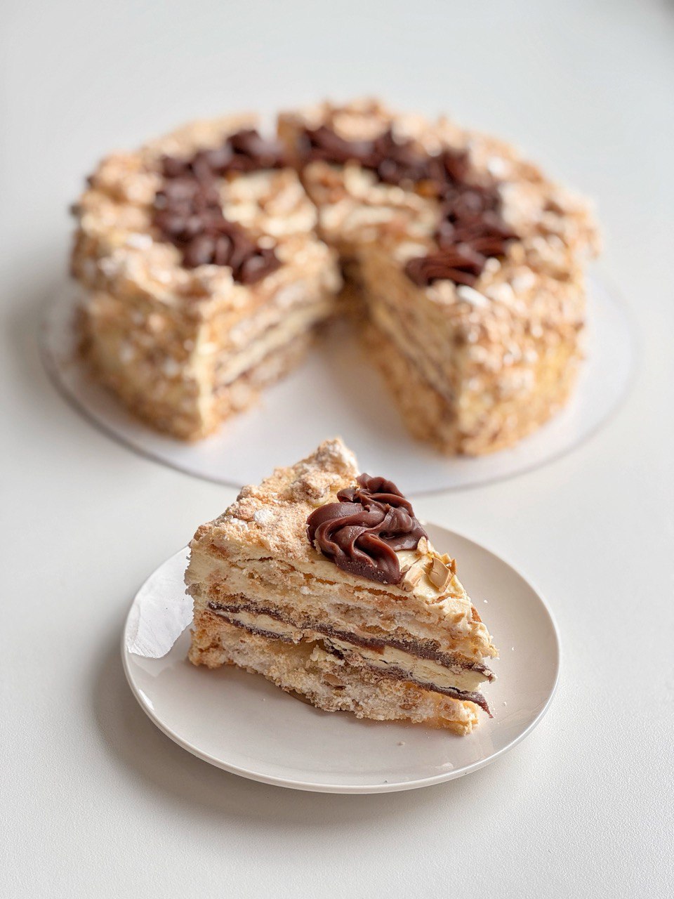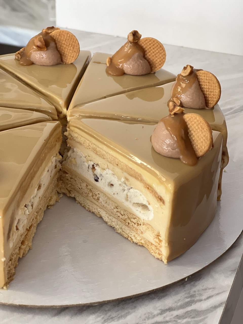 Карамелизированные грецкие орехи Карамель Крем карамельный Ванильные коржи с пропиткой Состав: яйца куриные пищевые, сахар, мука в/с, масло сливочное м.д.ж 82,5%,сливки натуральные м.д.ж. 33%,арахисовая паста,сахарная пудра,грецкий орех Продукция производится на предприятии, где используются аллергены: арахис, орехи, кунжут. КБЖУ на 100 : 400 ккал белки 6 жиры 28 углеводы 25 Срок годности 72 часа (начиная с утра в день доставки / самовывоза)