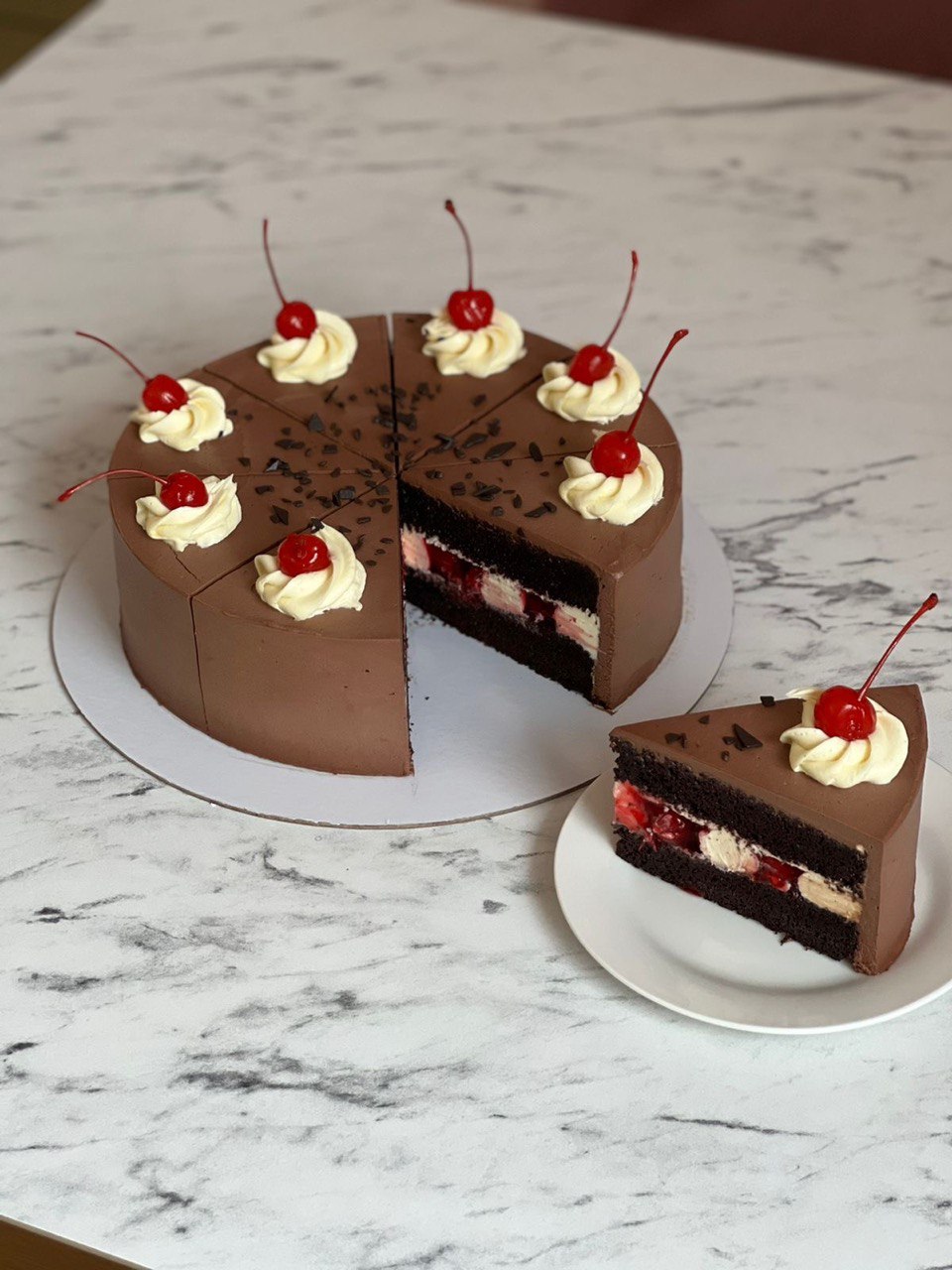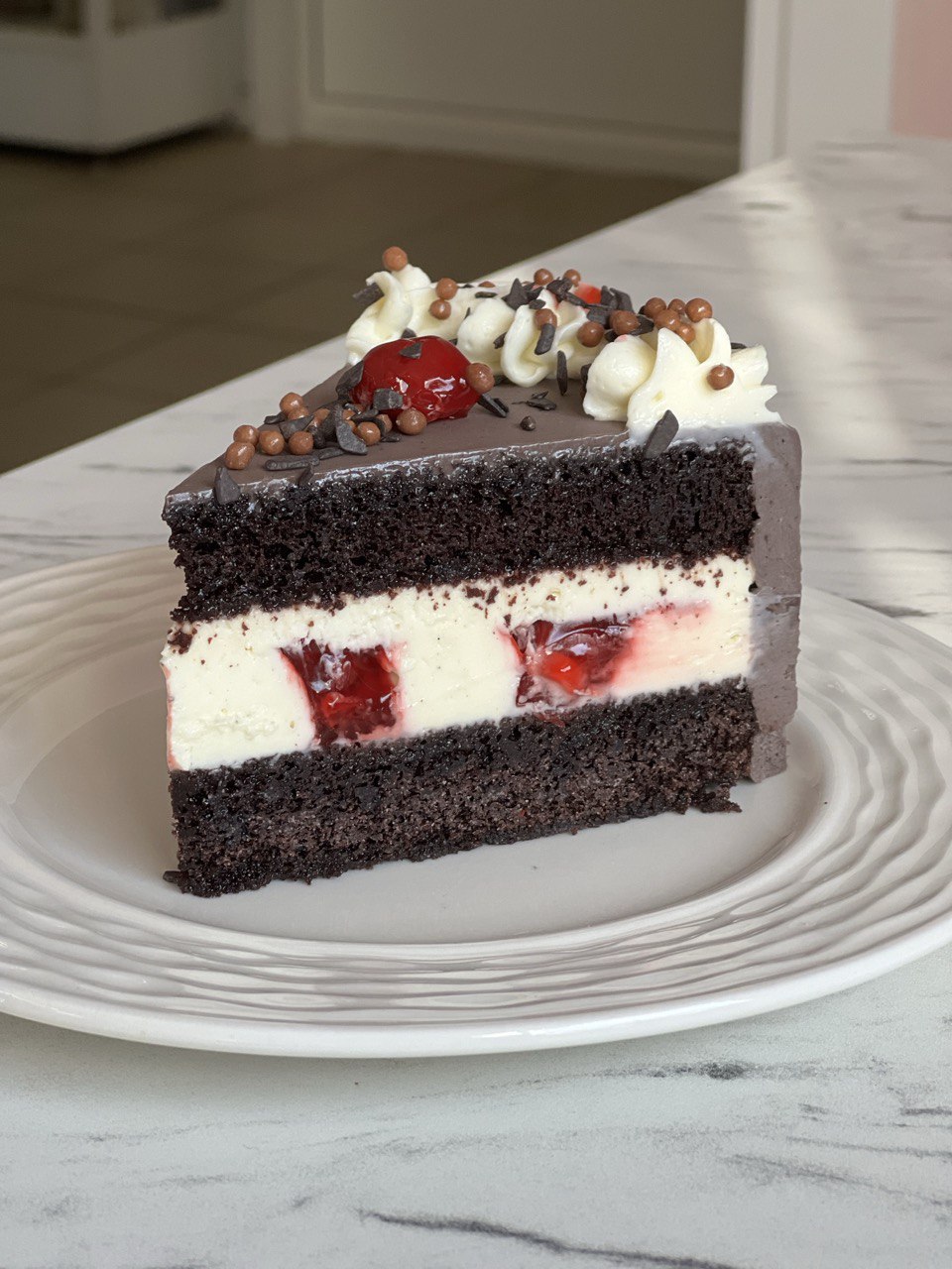Состав: Ванильный кремчиз Шоколадный бисквит с вишнёвой пропиткой Вишневое компоте Крем(сыр сливочный м.д.ж. в сухом веществе 70%(молоко пастеризованное, соль пищевая, закваска молочнокислых бактерий, молокосвертывающий ферментный препарат микробного происхождения), масло сливочное несолёное м.д.ж. 82,5%, сахарная пудра(сахар)),пюре вишни с/з, вишня целая с/з, мука в/с, сахар, какао порошок ,сливки натуральные м.д.ж. 33%,яйца куриные пищевые, темный шоколад (сахар, какао масло, цельное сухое молоко , какао тертое эмульгатор соевый лецитин, натуральный ароматизатор ваниль),темный шоколад Продукция производится на предприятии, где используются аллергены: арахис, орехи, кунжут. КБЖУ на 100 г 335 ккал белки 4 жиры 21 углеводы 35 Срок годности: 72 часа (начиная с утра в день доставки / самовывоза)