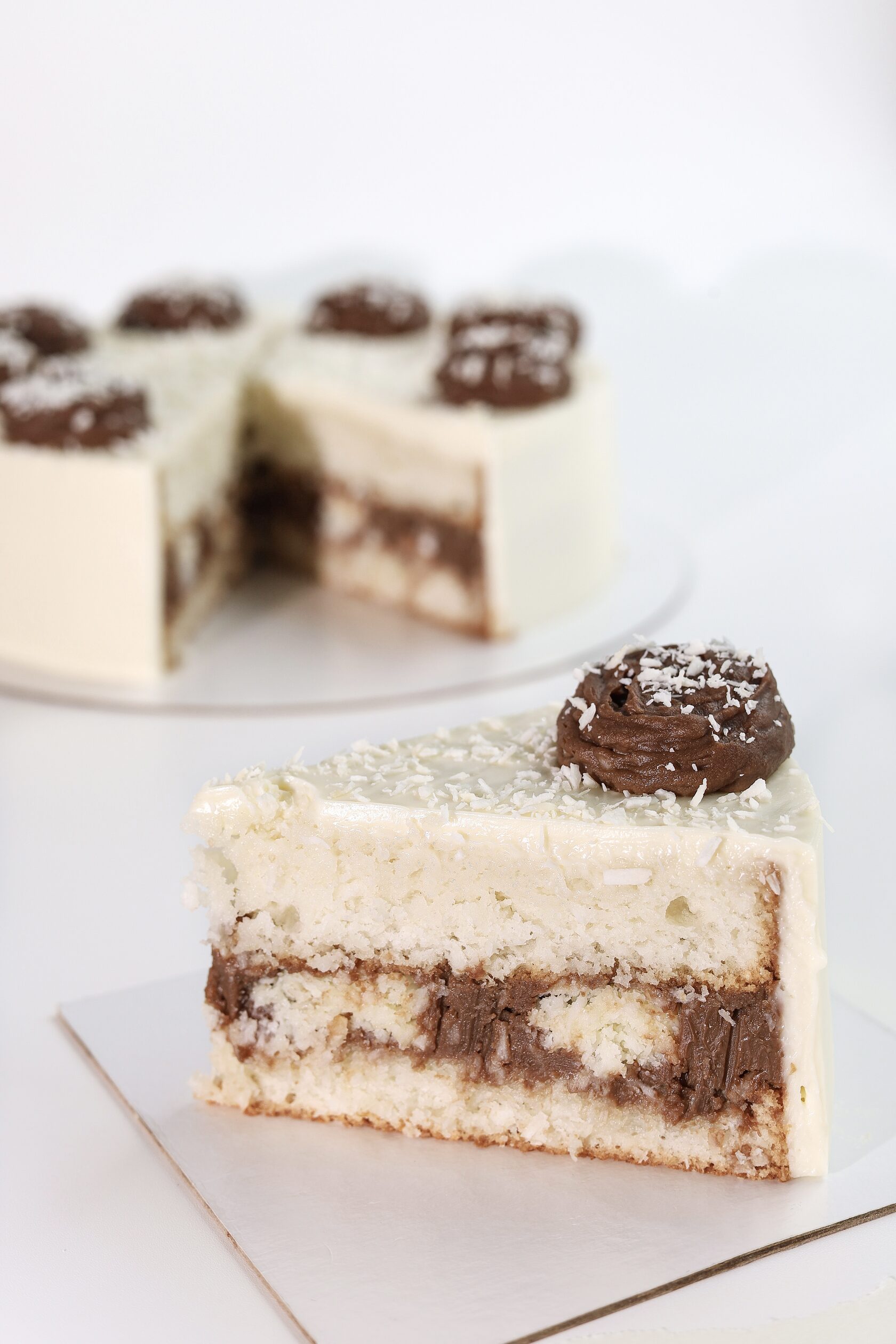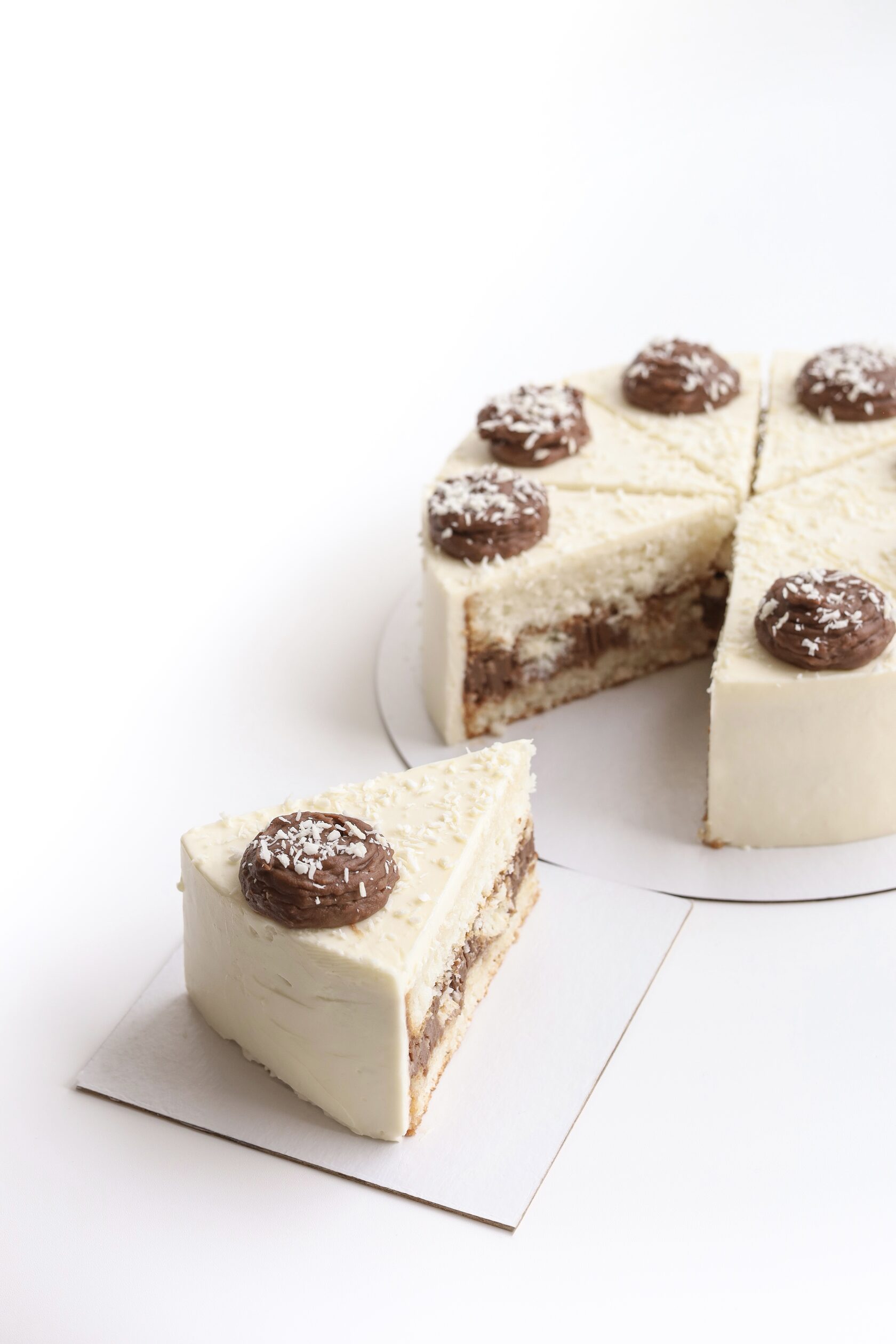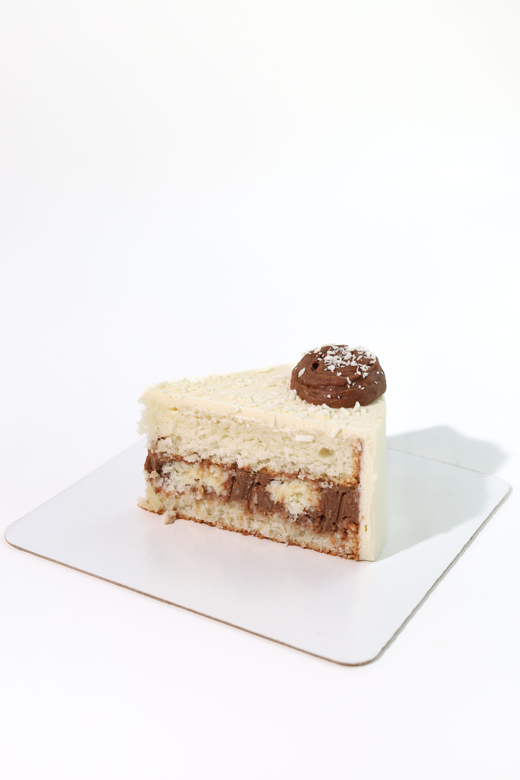 Кокосовый бисквит, ганаш на молочном шоколад с кокосовым пюре, кокосовая прослойка, кремчиз Состав: Сливки 33%, , сахар белый, крахмал кукурузный, масло сливочное 82,5%, желатин, мука пшеничная В/С, пектин NH, масло виноградной косточки, какао-масло, белок пастеризованный, мука кокосовая , шоколад бельгийский молочный (сахар, какао-масло, цельное сухое молоко, какао-масса, эмульгатор соевый лецитин <1%, натуральный ароматизатор – ваниль). Продукция производится на предприятии, где используются аллергены: орехи КБЖУ 317 на 100 г белки 4,3 жиры 27 углеводы 35 Срок годности 72 часа (начиная с утра в день доставки / самовывоза)