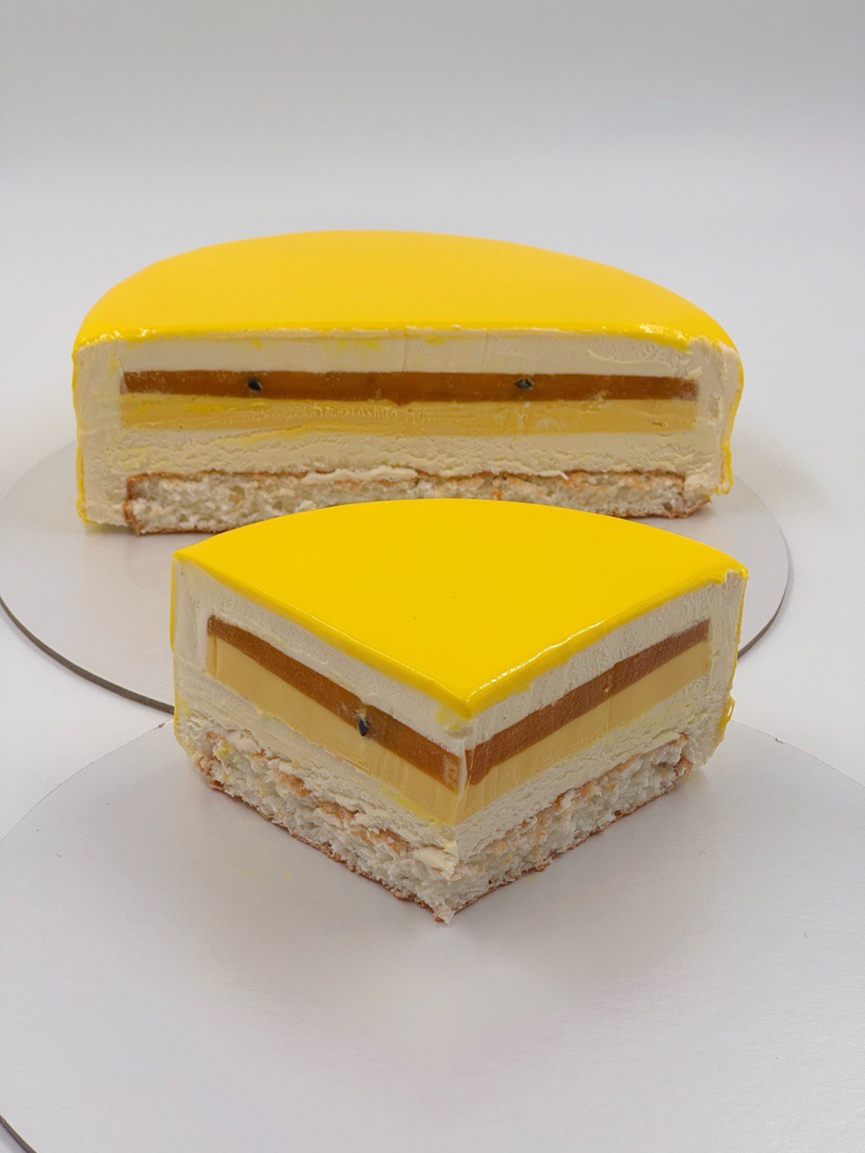 Состав: Глазурь шоколадная со сгущенкой Заварной масляный крем Безе с фундуком Песочные коржи мука В/С,сахар,крем сливочный м.д.ж 33%,масло сладко-сливочное несоленое,мука миндальная,меланж яичный пастеризованный, манго пюре, маракуйя пюре, сахар белый, крахмал кукурузный, масло сливочное 82,5%, шоколад бельгийский белый (сахар, какао-масло, цельное сухое молоко, какао-масса, эмульгатор соевый лецитин <1%, натуральный ароматизатор – ваниль). Продукция производится на предприятии, где используются аллергены: арахис, кунжут. Срок годности: 5 суток КБЖУ: 414.8 Ккал 2.6 г Белки, 29.6 г Жиры, 34.5 г Углеводы.